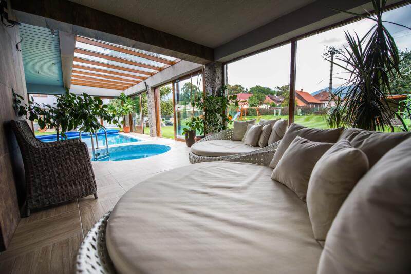 Ako jediný penzión na Liptove disponujeme dvoma bazénmi a dvoma vírivkami: vonkajšia vyhrievaná vírivka so slanou vodou až 30°C, vnútornou thermo vírivkou a 2 relaxačnými bazénmi.
