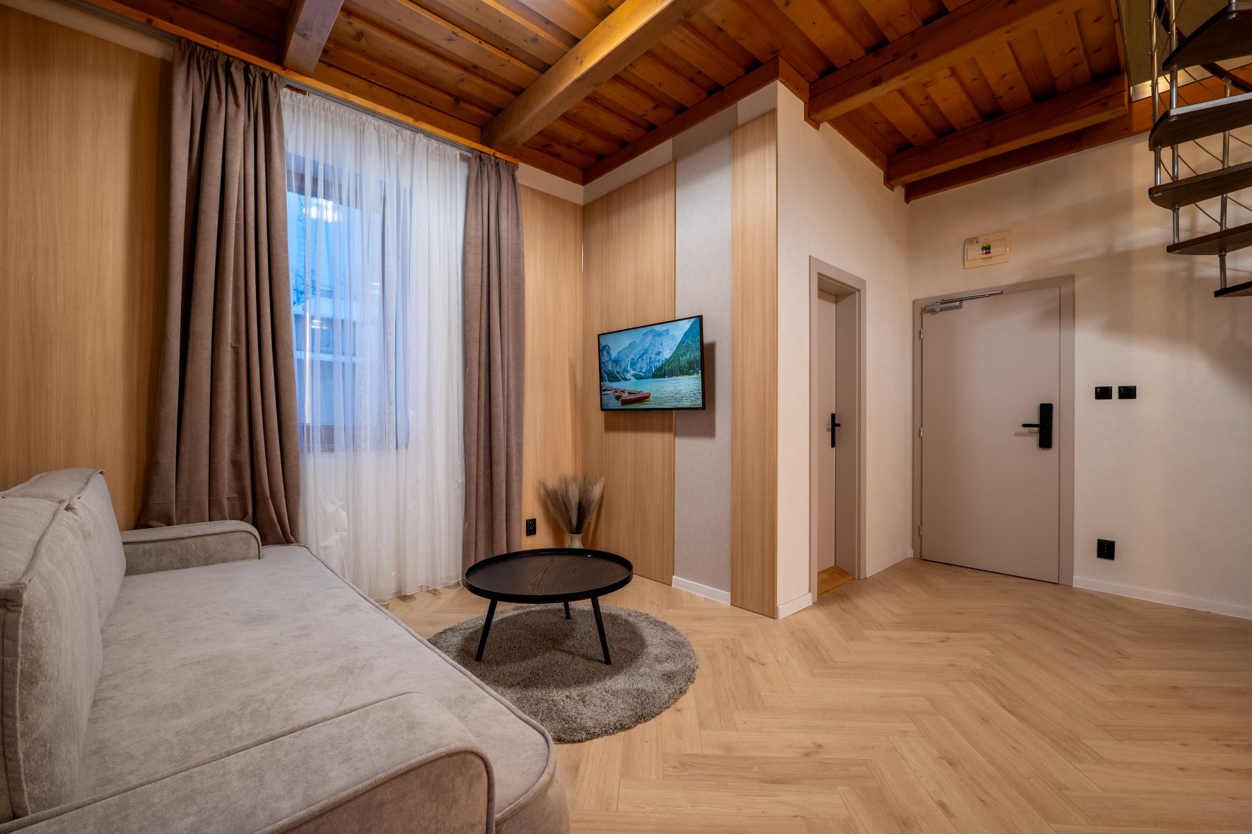 Štýlový, novo zrekonštruovaný rodinný mezonetový apartmán s balkónom, situovaný na poschodí so severnou orientáciou a výhľadom na Západné Tatry. Dvojúrovňové riešenie poskytuje dostatok priestoru a súkromia pre rodiny aj skupiny.