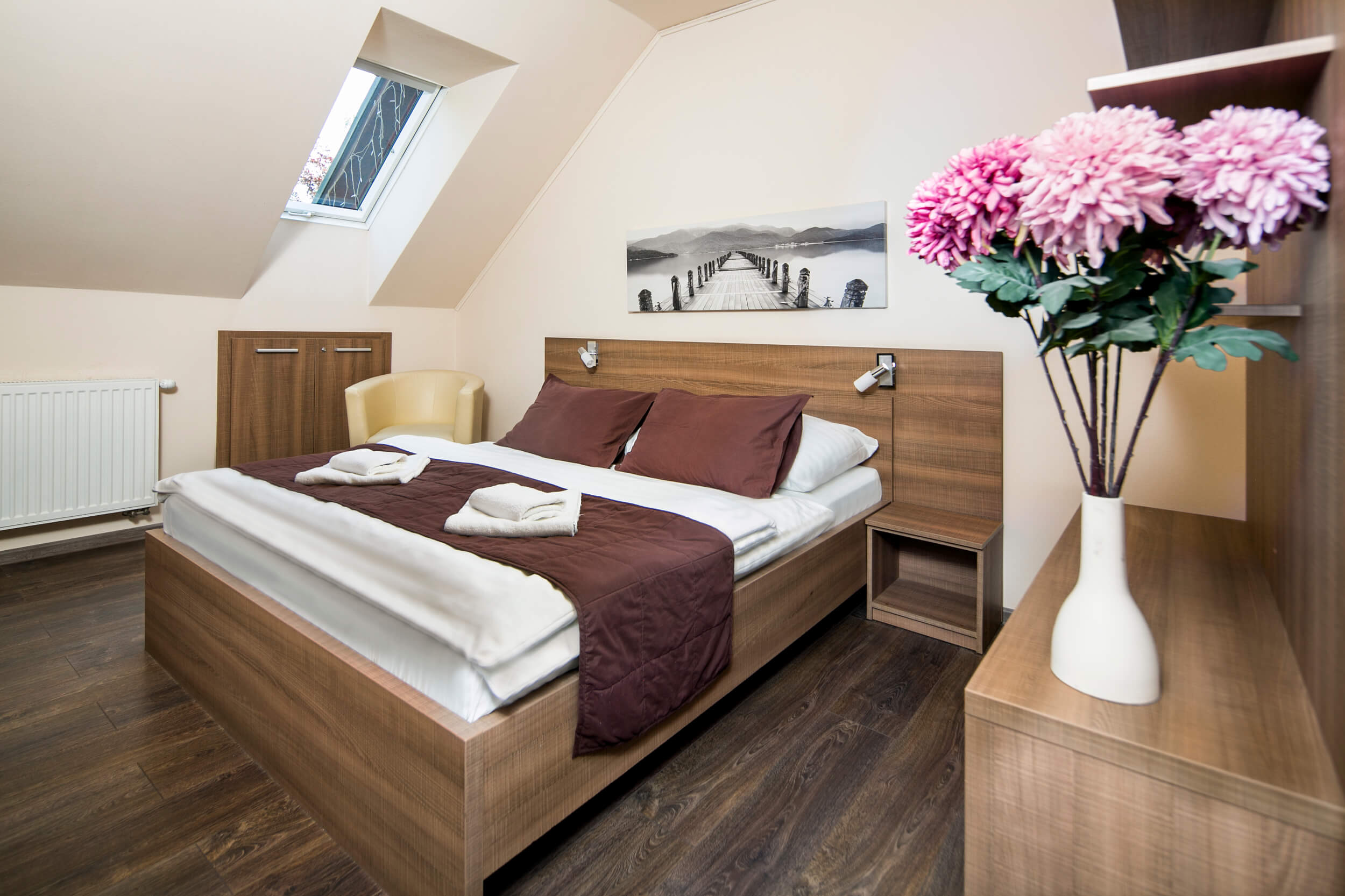 - Spálňa: manželská posteľ pre 2 osoby (nie je možné rozdeliť na samostatné lôžka)